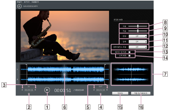 재생 지점의 전후 1초 동안의 음성 파형을 볼 수 있습니다.