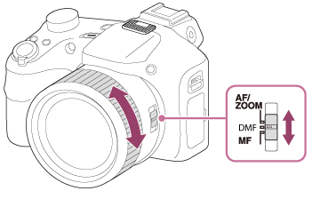 - ズーム/フォーカススイッチをDMFにする。