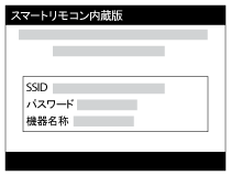 (アプリケーション)→[アプリ一覧]→[スマートリモコン内蔵版]を選ぶ。 - 接続可能な状態になると表示される画面の情報を使って、スマートフォンから本機に接続する。