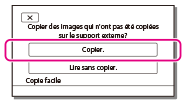 - Les films et les photos stockés sur le support d'enregistrement qui n'ont pas encore été sauvegardés sur un périphérique de stockage externe peuvent l'être à ce stade sur le périphérique connecté.