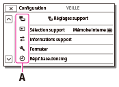 Les menus [Caméra/Micro] et [Configuration] disposent de sous-catégories. Sélectionnez l'icône de sous-catégorie pour que vous puissiez sélectionner l'option de menu désirée.