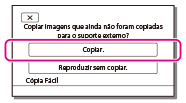 - Os filmes e as fotografias que estão armazenados no suporte de gravação e que ainda não tenham sido guardados num dispositivo de suporte externo, podem agora ser guardados no dispositivo de suporte que está ligado.