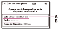 - O SSID e a senha são apresentadas no monitor LCD deste produto. Este produto está preparado para ser controlado com o smartphone.