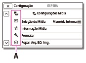Os menus [Câmera/Microfone] e [Configuração] possuem subcategorias. Selecione o ícone da subcategoria para que você possa selecionar o item de menu desejado.