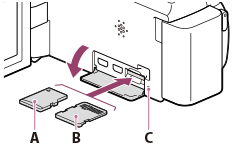 Memory Stick Micro (M2): Εισάγετε την κάρτα μνήμης κρατώντας την ίσια, προς την κατεύθυνση που απεικονίζεται στην εικόνα B, μέχρι να ασφαλίσει στη θέση της.