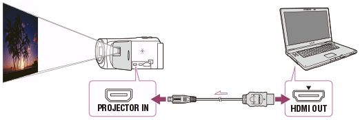 - Συνδέστε την υποδοχή PROJECTOR IN της συσκευής με την υποδοχή εξόδου HDMI της άλλης συσκευής χρησιμοποιώντας το καλώδιο HDMI (παρέχεται).