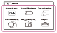 Τα μενού [Μηχανή/Μικρόφωνο] και [Ρυθμίσεις] διαθέτουν υποκατηγορίες. Πιέστε το εικονίδιο υποκατηγορίας για να επιλέξτε το επιθυμητό στοιχείο μενού.