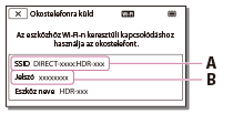 - A PlayMemories Mobile képernyőjén válassza azt az SSID azonosítót, amely a készülék LCD-monitorán is látható, majd írj be a készülék LCD-monitorán megjelenő jelszót.