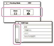 Menyerna [Camera/Mic] och [Setup] har underkategorier. Markera ikonen för underkategorin så att du kan välja önskat menyalternativ.