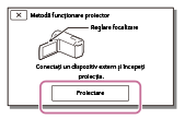 - Îndreptaţi lentila proiectorului spre o suprafaţă precum un perete şi apoi apăsaţi pe PROJECTOR.