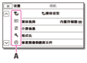 [相机/麦克风]和[设置]菜单有子类别。选择子类别图标以便您可以选择所需的菜单项目。