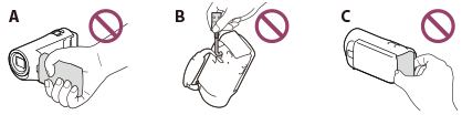 - 万一、ビデオカメラレコーダーや記録メディアなどの不具合により記録や再生がされなかった場合、画像や音声などの記録内容の補償については、ご容赦ください。