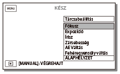 A MANUAL tárcsával vezérelhető menüpontok