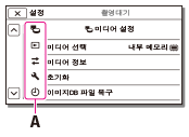 [카메라/마이크] 및 [설정] 메뉴에는 하위 범주가 있습니다. 원하는 메뉴 항목을 선택할 수 있도록 하위 범주 아이콘을 선택하십시오.