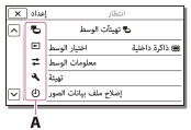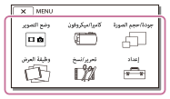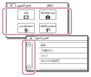 تحتوي قوائم [كاميرا/ميكروفون] و [إعداد] على فئات فرعية. اختر رمز الفئة الفرعية حتى تتمكن من اختيار عنصر القائمة المرغوب.