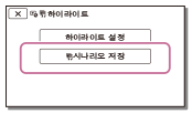 즐겨찾는 하이라이트 재생을 "시나리오"로서 저장할 수 있습니다. 최대 8개 시나리오를 저장할 수 있습니다.