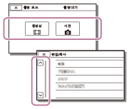 [카메라/마이크] 및 [설정] 메뉴에는 하위 범주가 있습니다. 원하는 메뉴 항목을 선택할 수 있도록 하위 범주 아이콘을 선택하십시오.