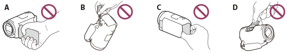 - Ne tenez pas le produit par les parties suivantes ou par le cache des prises.