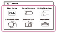 I menu [Ripresa/Microfono] e [Impostazioni] hanno delle categorie secondarie. Selezionare l’icona della categoria secondaria per poi selezionare la voce del menu desiderata.