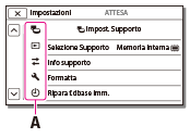I menu [Ripresa/Microfono] e [Impostazioni] hanno delle categorie secondarie. Selezionare l’icona della categoria secondaria per poi selezionare la voce del menu desiderata.