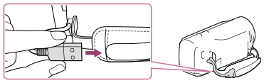 - Připojte videokameru do síťové zásuvky pomocí pomocného spojovacího kabelu USB a napájecího adaptéru.