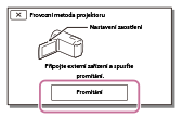 - Tato obrazovka se otevře při prvním použití vestavěného projektoru po zapnutí videokamery.
