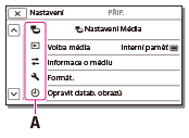 Některé položky nebo nastavení nabídky nemusí být v závislosti na nastaveních videokamery dostupné. Po výběru šedých položek nebo nastavení nabídky videokamera zobrazí důvod, proč nelze danou položku vybrat.