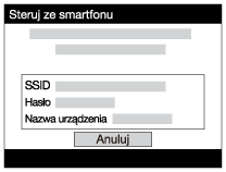 • Urządzenie udostępnia informacje na temat połączenia przy użyciu funkcji [Steruj ze smartfonu] z urządzeniem, które ma uprawnienia do połączeń. Jeśli chcesz zmienić urządzenie uprawnione do połączenia z urządzeniem, skasuj ustawienia połączenia, postępując zgodnie z poniższą procedurą. MENU → (Sieć bezprzew.)[Reset SSID/hasła]. Po skasowaniu danych połączenia należy ponownie zarejestrować smartfon.