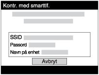 (Trådløs) → [Kontr. med smarttlf.]. - Når produktet er klart til tilkobling, vises et informasjonsskjermbilde på produktet. Koble sammen smarttelefonen og produktet ved hjelp av den viste informasjonen.