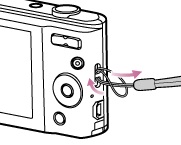 Prenda a correia e passe a mão através do laço para evitar danos na câmara devido a quedas.