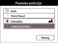 Upotrebljava fotoaparat podešen na vrijeme vašeg odredišta. Postavite zemljopisno područje odredišta.