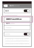 - 本機に表示されているSSID(機器名称)をiPhoneで選ぶ。