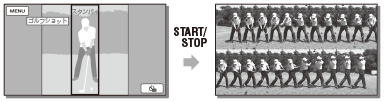 2秒間の高速な動作を分割して、動画・静止画として記録します。再生すると、一連の動作が表示されるので、ゴルフやテニスのフォームを確認するときに便利です。