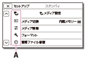 [カメラ・マイク]、[セットアップ]のメニューにはサブカテゴリーがあります。サブカテゴリーアイコンを選ぶとお好みのメニューをすばやく選ぶことができます。