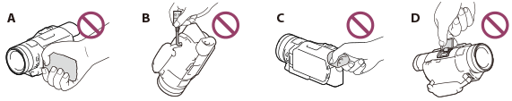 - Niniejszego urządzenia nie należy trzymać za osłony gniazd ani za następujące elementy.