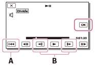-painikkeilla kohta, josta video jaetaan kohtauksiin, ja valitse sitten