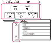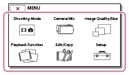 [Camera/Mic]-ja [Setup]-valikoissa on aliluokkia. Valitse aliluokan kuvake, niin pääset valitsemaan haluamasi valikkokohteen.