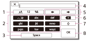 Tekstin kirjoittamista varten LCD-näyttöön aukeaa näppäimistö.