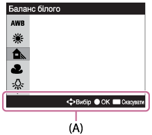 по центру диска керування. З’явиться відповідний екран налаштування для цієї функції. Для виконання налаштувань виконайте вказівки в довідках з використання (A).