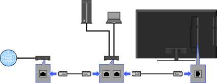 Podłącz kabel sieci LAN lub dodaj telewizor do bezprzewodowej sieci LAN, aby cieszyć się funkcjami sieci domowej „BRAVIA”.