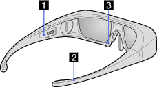 - Мига 3 пъти: означава, че очилата са изключени. Очилата се изключват, ако задържите бутона за изключване натиснат за 2 секунди, или ако няма открит сигнал от 3D синхронен предавател за повече от 5 минути.