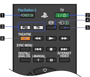 Превключва функцията на телевизора или функцията на вградената PlayStation(R)2 на дистанционното и превключва автоматично входящия източник между телевизора и PlayStation(R)2.