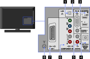 - Ако оборудването има DVI жак, свържете го с HDMI IN 4 чрез DVI - HDMI адаптер (не се доставя), и свържете изходните аудио жакове на оборудването към PC/HDMI 4 AUDIO IN, който е разположен на PC IN.