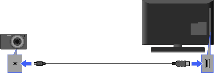 - Ob povezavi digitalne kamere Sony na TV z USB kablom, morajo biti USB nastavitve na vaši kameri nastavljene na način »Samodejno« ali »Mass Storage«.