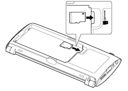 Achten Sie darauf, dass die microSD-Speicherkarte richtig herum eingesetzt wird. Wenn Sie die Karte mit Gewalt falsch herum in den Steckplatz stecken, kann der Steckplatz beschädigt werden. Ausführliche Informationen hierzu finden Sie im Handbuch der microSD-Speicherkarte.