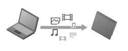 If you connect a computer to your tablet device using the Micro-USB cable sold separately ([Details]), you can copy data on a computer to your tablet device. The copied data can then be played back on your tablet device.