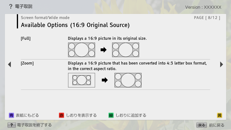 - Displays a 16:9 picture that has been converted into 4:3 letter box format, in the correct aspect ratio.