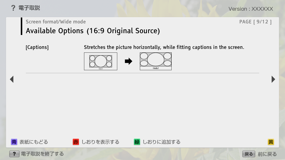 - Stretches the picture horizontally to fill a 16:9 screen, while fitting captions in the screen.