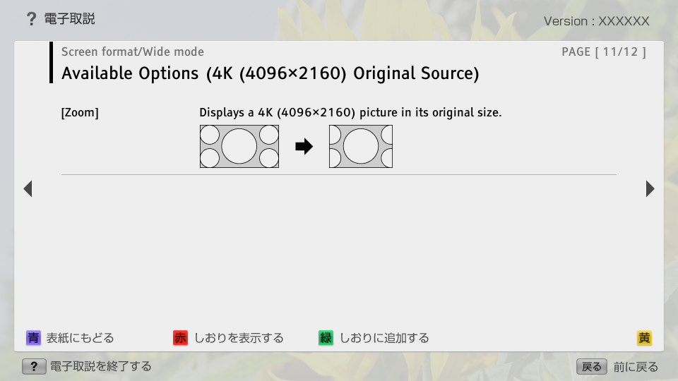 - Displays a 14:9 picture in its original size. Side bars are shown to fill the 16:9 screen. (This option is available depending on your region/country.)