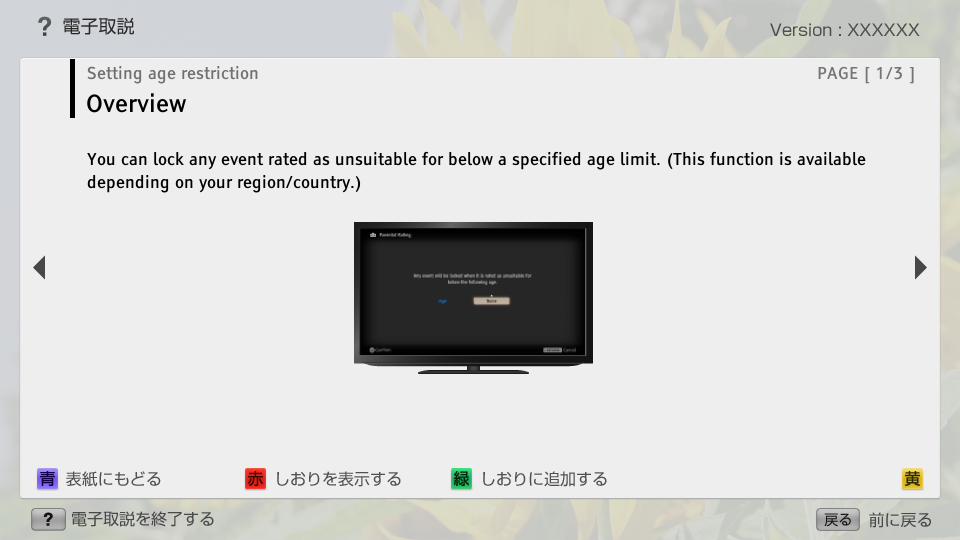 You can lock any event rated as unsuitable for below a specified age limit. (This function is available depending on your region/country.)